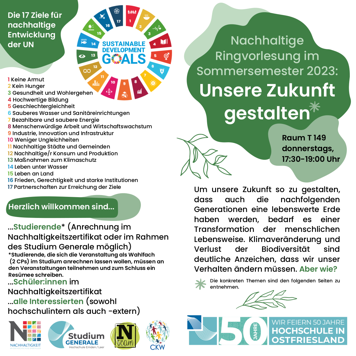 The University of Applied Sciences Emden/Leer is celebrating its 50th anniversary. As sustainability is always a major concern both in teaching and in the daily life at the university, one of the events the university is celebrating its anniversary is a special lecture series entitled unsere Zukunft gestalten